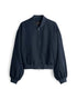 lockere Passform, O-Form, verkürzte Länge, überschnittene Schulter mit Langarm, Blousonkragen, Rückenlänge ca. 54 cm bei Größe 36, Model Größe 178 cm – trägt Größe 36, Webware, glattes Innenfutter, natürlicher Griff, fließender Fall, schräge Paspeltaschen, schmale Rippbündchen, Zwei-Wege-Reißverschluss, Passe im Rücken