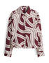 weite Passform, leicht ausgestellt geschnitten, verkürzte Länge, überschnittene Schulter mit Langarm, Hemdblusenkragen, Rückenlänge ca. 56 cm bei Größe 36, Farbe coal blue: Model Größe 172 cm – trägt Größe 36, Farbe cassis: Model Größe 175 cm – trägt Größe 36, Webware, enthält nichttextile Teile tierischen Ursprungs, dezente Struktur, weicher Griff, fließender Fall, grafisches Muster, Kellerfalte im Rücken, verdeckte Knopfleiste, Schlitze in den Seiten, Perlmuttknöpfe, klassische Manschetten Farbe