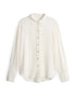 lockere Passform, gerader Schnitt, Langarm, Hemdblusenkragen, Rückenlänge ca. 71 cm bei Größe 36, Model Größe 179 cm – trägt Größe 36, leichte Transparenz im hellen Farbton, Webware, dezente Twillstruktur, glatter Griff, fließender Fall, enthält nichttextile Teile tierischen Ursprungs, Faltendetail am Rücken, abgerundeter Saum, Knopfleiste, Perlmuttknöpfe Farbe