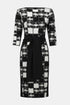 Dieses exquisite Etuikleid setzt mit seinem faszinierenden Karomuster, dem schmeichelhaften U-Bootausschnitt und einer taillenbetonenden, kontrastierenden Schärpe vorn einen besonderen Akzent. Es ist aus luxuriösem Jacquard-Strick gefertigt und verfügt über seitliche Einsätze aus feinem Jersey, die sowohl Bewegungsfreiheit als auch zusätzlich Stil bieten. Ein Reißverschluss hinten und ein Schlitz am Saum gibt ein raffiniertes Finish.