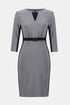 Dieses Kleid aus Melange und feinem Jersey bietet mit seiner schmeichelhaften Etui-Silhouette einen raffinierten und zugleich klassischen Stil. Die Dreiviertelärmel und der Ausschnitt mit Schlitz tragen zum raffinierten Look des Designs bei, während die Seitenbereiche einen auffälligen visuellen Kontrast schaffen. Der Gürtel, geschmückt mit einem zarten Ornament, umhüllt die Taille auf elegante Weise und hebt die schicke Ausstrahlung des Kleides hervor.