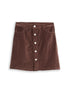 * Kurzer Samtrock mit Knopfleiste, seitlichen Eingriffstaschen und Gürtelschlaufen am Bund