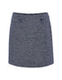 normale Passform, ausgestellt geschnitten, Mini-Länge, hintere Länge ca. 44 cm in Größe 36, Model Größe 175 cm – trägt Größe 36, Webware, dezente Struktur, Zweifarbigkeit, Reißverschluss hinten, Leisten - und Knopfdetail