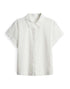 lockere Passform, gerader Schnitt, leicht verkürzt geschnitten, überschnittene Schulter mit Kurzarm, Hemdblusenkragen, Rückenlänge ca. 58 cm bei Größe 36, Model Größe 178 cm – trägt Größe 36, Webware, Lochstrukur, leichter Stoff, leichte Transparenz, verdeckte Knopfleiste Farbe