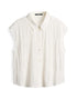 normale Passform, figurbetont geschnitten, leicht verkürzt geschnitten, überschnittener Kurzarm, Hemdblusenkragen, Rückenlänge ca. 58 cm bei Größe 36, Model Größe 177 cm – trägt Größe 36, Webware, enthält nichttextile Teile tierischen Ursprungs, plissierte Struktur, leichter Stoff, leichte Transparenz, Knopfleiste vorn, Perlmuttknöpfe