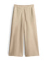 weiter, gerader Beinverlauf, Hosenbein Innenlänge ca. 63 cm in jeder Größe, Model Größe 177 cm – trägt Größe 36, Webware, dezente Struktur, glatter Stoff, matter Glanz in der Oberfläche, französische Taschen, Zier-Paspeltaschen hinten, elastischer Gummibund hinten , angedeuteter Hosenschlitz , leichte Melange Optik im hellen Farbton