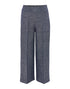 Wide Cropped, weit am Oberschenkel, weiter Beinverlauf, hoher Bund, verkürzte Länge, Beininnenlänge ca. 63 cm in jeder Größe, Model Größe 175 cm – trägt Größe 36, Webware, dezente Struktur, formstabil, leicht elastischer Stoff, meliertes Muster, Zweifarbigkeit, Zier-Paspeltasche hinten, Reißverschluss in der Seite, Bügelfalten