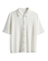 lockere Passform, gerader Schnitt, leicht verkürzt geschnitten, Halbarm, Hemdblusenkragen, Rückenlänge ca. 56 cm bei Größe 36, Model Größe 178 cm – trägt Größe 36, Jersey, extrem weicher Griff, gebürstete Oberfläche, elastischer Stoff, lange Knopfleiste, Knöpfe in Perlmutt Optik, kleiner Aufschlag am Ärmel