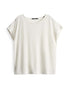 normale Passform, gerader Schnitt, normale Länge, überschnittene Schulter mit Kurzarm, U-Boot-Ausschnitt, Rückenlänge ca. 56 cm bei Größe 36, Model Größe 177 cm – trägt Größe 36, Jersey, feine Rippstruktur, natürlicher Griff, leichte Transparenz im hellen Farbton, elastischer Stoff