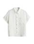 weite Passform, gerader Schnitt, normale Länge, überschnittener Kurzarm, Hemdblusenkragen, Rückenlänge ca. 59 cm bei Größe 36, Model Größe 176 cm – trägt Größe 36, Webware, enthält nichttextile Teile tierischen Ursprungs, natürliche Leinenstruktur, natürlicher Griff, atmungsaktiv, kühlender Effekt, aufgesetzte Brusttasche, lange Knopfleiste, Perlmuttknöpfe, Passe im Rücken Material