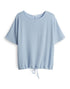 weite Passform, schmal zulaufend, verkürzte Länge, überschnittener Halbarm, weiter Rundhalsausschnitt, Rückenlänge ca. 56 cm bei Größe 36, Model Größe 178 cm – trägt Größe 36, Jersey, strukturierte Oberfläche, weicher Griff, fließender Fall, Streifenmuster, Tunnelzug im Saum, Fledermausärmel, Längsnaht hinten Material