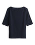 schmale Passform, gerader Schnitt, normale Länge, Halbarm, U-Boot-Ausschnitt, Rückenlänge ca. 59 cm bei Größe 36, Model Größe 178 cm – trägt Größe 36, Jersey, geometrische Struktur, weicher Griff, elastischer Stoff