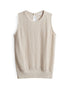 lockere Passform, schmal zulaufend, normale Länge, Nullarm, Rundhalsausschnitt, Rückenlänge ca. 56 cm bei Größe 36, Model Größe 175 cm – trägt Größe 36, Jersey, gesmokt, leichter Stoff, weich fließender Fall, elastischer Stoff, elastischer Bund am Saum, Knopf mit Öse im Rücken, kleiner Schlitz im Rücken